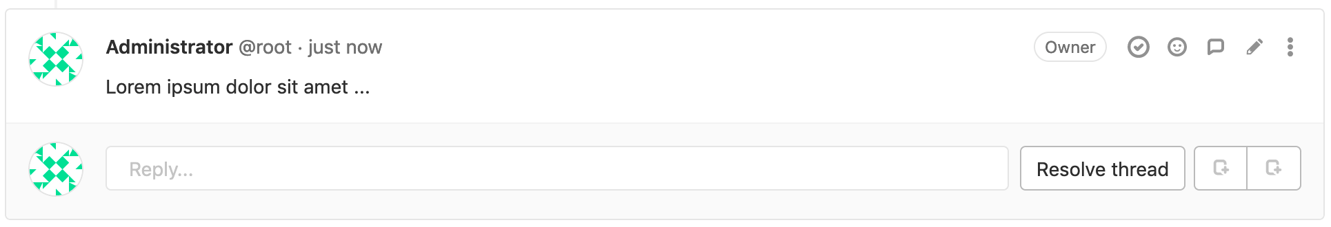 - In the top right of the original comment, select the Resolve thread ({check-circle}) icon.