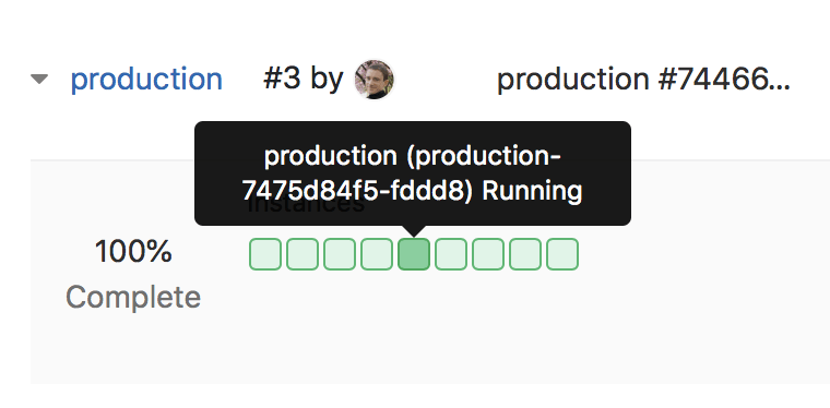 production. - On the Environments page, you should see the status of the environment's pods with deploy boards.