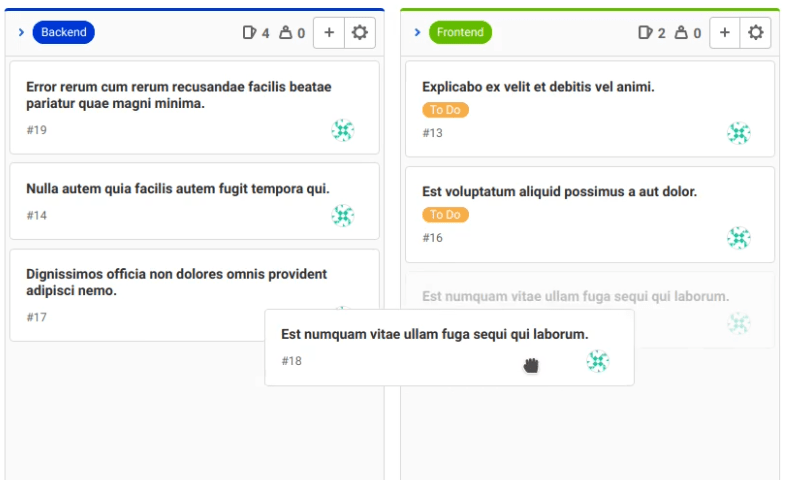 Then, when they're done, all they have to do is drag it to the next list, Backend. Then, a backend developer can eventually pick it up. When they're done, they move it to Done, to close the issue.
